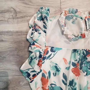 NWT Bebe Printed Smocked Tiered Mini Dress,Tropical Garden,Green/White/Orange.