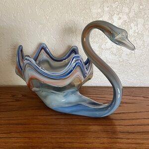 Vintage Hand-blown Art Glass Swan Bowl/Planter