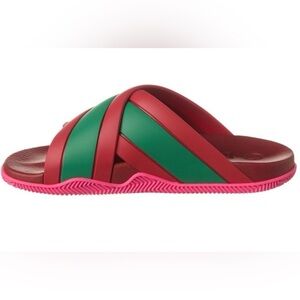 NEW Gucci Women's Rubber Web Striped Slides Sandals EU38 US8