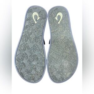 Olukai Women Puawe Navy Flip Flops with Floral Design Sandals Flat Sz 6