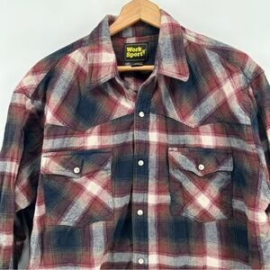Work n Sport Flannel Pearl Snap Shirt Men's XL Maroon Plaid Western Rodeo