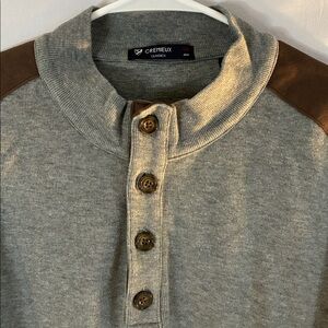 Cremieux mens gray pullover sweatshirt 1/4 button up faux suede accents size XXL