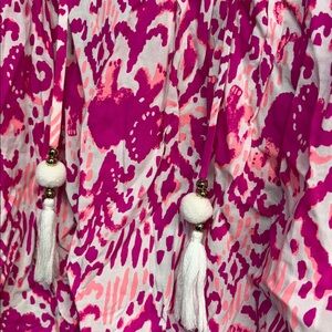 Lilly Pulitzer Alanna lace Tons of fun cold shoulder magenta tassel shirt xs