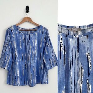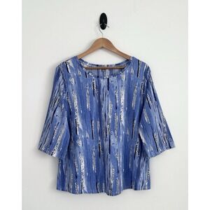 Habitat Clothes to Live in Size XL Blue & White / Multicolor 100% Cotton 3/4 Sleeve Top NWOT