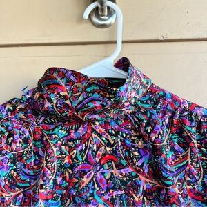 Petite Notation Floral Turtleneck Long Sleeve Blouse - Vintage Size 8