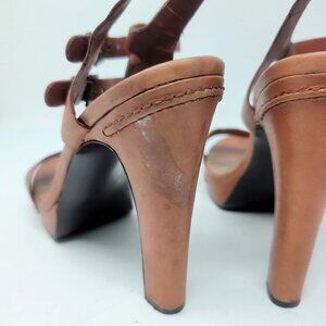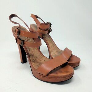 Ralph Lauren Tan Leather Heels 10 Platform Ankle Strap