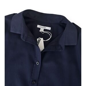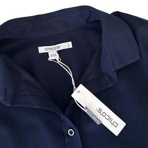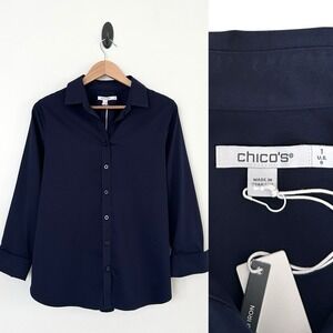 Chico's Women's Medium / Size 1 Navy Blue No Iron Long Sleeve Button Shirt 8 NWT