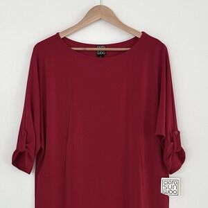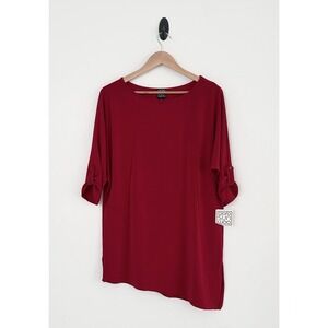 Ciara Sun Woo Women's Size Small Red 3/4 Sleeves Asymmetric Hem Tunic Top NWT