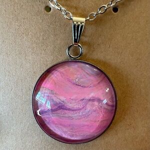 Acrylic Paint Poured Fluid Art Pendant on Chain