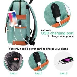 NEW Ronyes Vintage Laptop Backpack w/ USB Charging Port – Mint Green