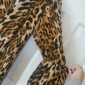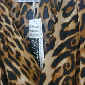 DALIA MACPHEE WOMEN'S SIZE LARGE LEOPARD PRINT BELL SLEEVE WRAP DRESS MIDI