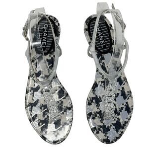 Chanel Clear Acrylic Chain CC Logo PVC Houndstooth Thong Flat Sandal size 39