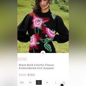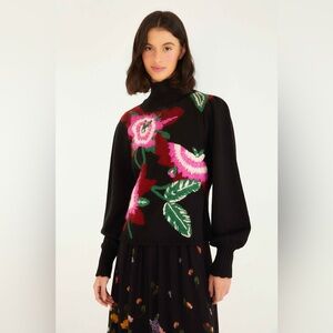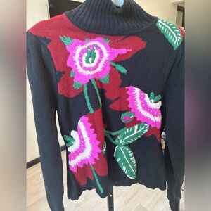 Farm Rio: Black Bold Colorful Flower Embroidered Knit Sweater