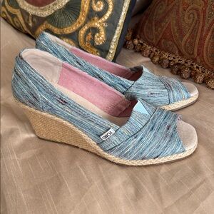 TOMS Women's Teal Espadrille Peep-Toe Shoes 9 1/2