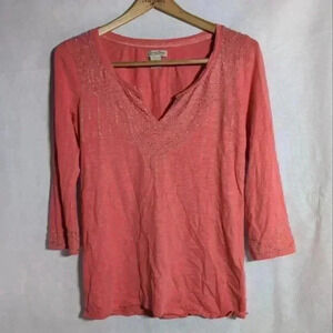Cool Peasant Top Pink 3/4 sleeve by Lucky Brand sz S Silver Details
