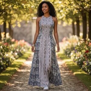 Paisley Cottagecore Prairie Romantic Shirring Maxi Dress Fairy Sz L Razorback