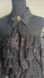 The front button closure is finished with satin trim, and the neckline is accented with a removable vintage-style brooch and ribbon bow (can be worn with or without for different looks).