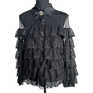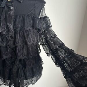 🖤Victorian Gothic Lace Ruffle Blouse | Sheer Black Romantic Tiered Top Size M
