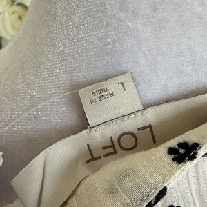 LOFT Cream Blouse with Black Floral Pattern