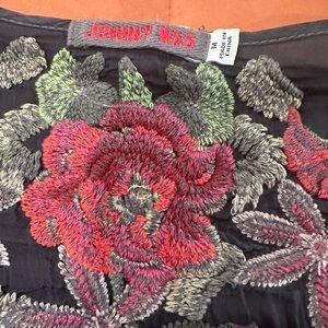 Johnny Was Black Floral Embroidered Blouse