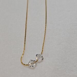 This beautiful gold-toned necklace features 2 sparkling glass beads