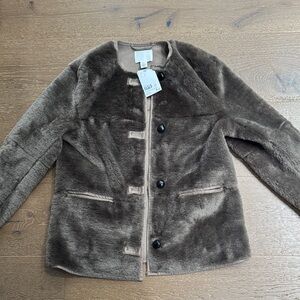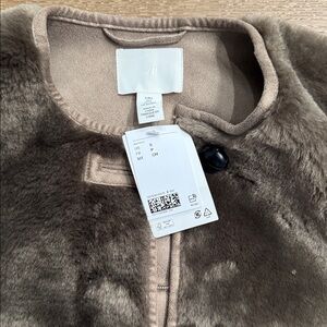 H&M faux fur jacket in a beautiful neutral taupe shade. Brand new with tags. Features soft plush texture, button front closure, and minimalist silhouette.
