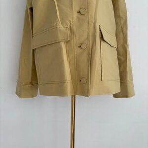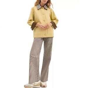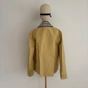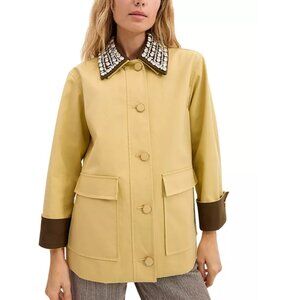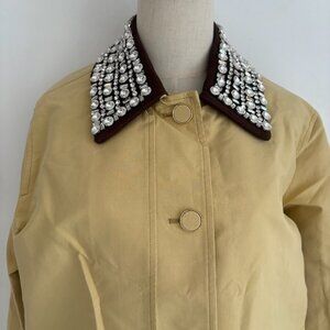 This versatile cotton jacket features a relaxed fit and practical flap pockets. A detachable canvas collar adorned with sparkling rhinestones adds a touch of glamour. Button-down cuffs and a button placket add sophisticated detail to this unique transitional piece.