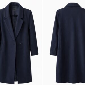 Stay warm and stylish with this elegant navy coat. Perfect for any occasion, this coat offers both comfort and sophistication.