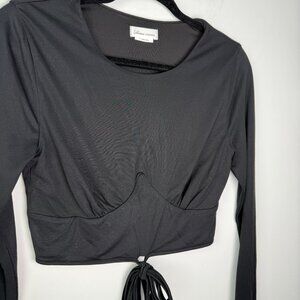 Lovers + Friends Long Sleeve Tie Front Corset Style Crop Top Black Size Small