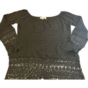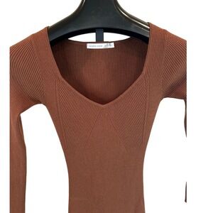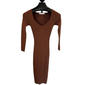 Altar State Ribbed Knit Midi Dress Long Sleeve Brown V Neck Stretch Women's S