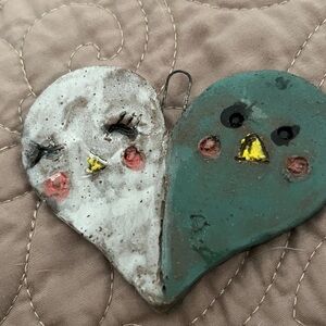 Cute Chick and Egg and birdie Ornaments! Hand sculpted and glazed! Set of 2!
