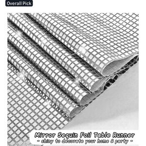 Elegant silver sequin table runner. Perfect for parties and home decor. Bundle of 5