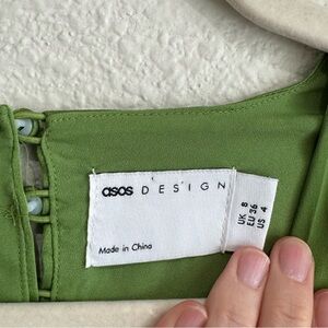 ASOS Design Satin Tie Front Size 4 Midi Dress Green Evening Lightweight Glam
