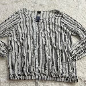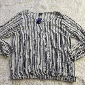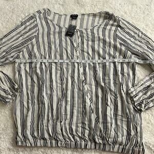 Torrid NWT Women's White/ Black Strip KeyHole Long Sleeve Elastic Waist Band Sz2