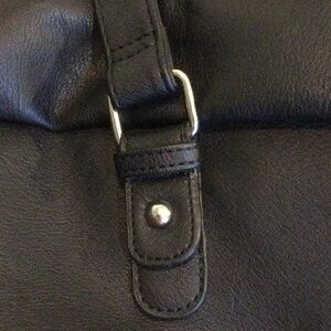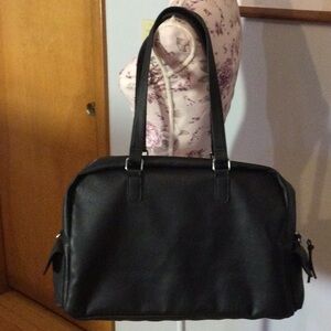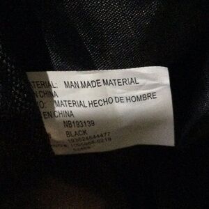 Made of man made material. Features large, zippered main compartment. Interior has zippered pocket, three slip pockets, and attached key clip. Exterior has zippered compartment on front and two snapped compartments on each end. Provides handles and adjustable shoulder strap via silver hardware. Perfect for overnight travel. Never used, and new without tags (NWOT)!