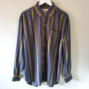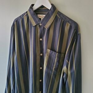 Tommy Bahama L Vintage 90s Dadcore Stripe Resortwear Silk Button Down Shirt