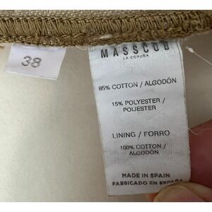 The Masscob A-Line Skirt in Tan Wide Wale Camel Corduroy with Square Pockets in size 38 (US S/M) is a versatile and stylish piece suitable for various occasions such as travel, casual wear, or business meetings. Made from a blend of cotton and polyester, this knee-length skirt features a classic A-line silhouette with a mid-rise waist and a hook button zip closure for a secure fit. The wide wale corduroy fabric adds a touch of texture and depth to the solid camel color, making it a perfect addition to your wardrobe for the winter, summer, or fall seasons. With its square pockets and classic design, this skirt from Masscob is a must-have for those looking for a preppy and collegiate-inspired look.