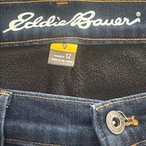 EDDIE BAUER Fleece Lined Denim Jeans 12 Slim Straight Slightly Curvy KL $100 EUC