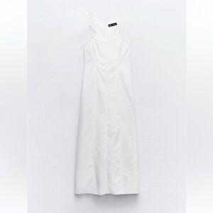 Chic white midi dress with tie straps. Perfect for any occasion.