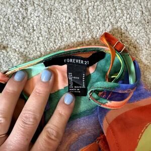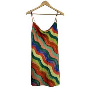 Rainbow Striped Mini Dress Silky Slipdress Women's Size Small