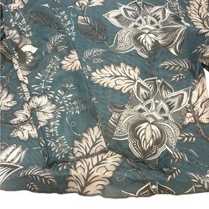 This Mesh Long Sleeve Top In Teal With A Floral Print Throughout In Cream And Faded Black Is Sheer, Wear Over A Tank Or Brami, Features A Mock Neckline With A Keyhole To Double Button Closure, Lettuce Edge Hem And Cuffs, Lightweight Fabric With Stretch, Mesh Floral Top, Mock Neck Mesh Top, Sheer Layering Top, Floral, Boho Chic, Stretch