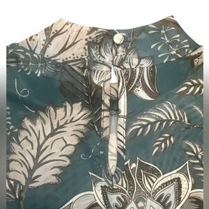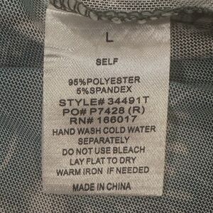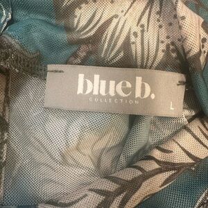 Blue B Mesh Top Size L Teal Long Sleeve Mock Neck Back Keyhole Button Closure