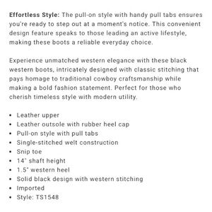 Old West Tall Leather Western Boots Size 7.5 Black Feminine
