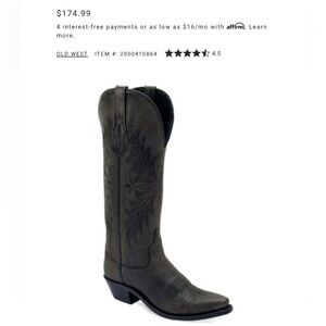Old West Women’s Size 7.5 B ( Average Width ) Black Leather Tall Western Boots