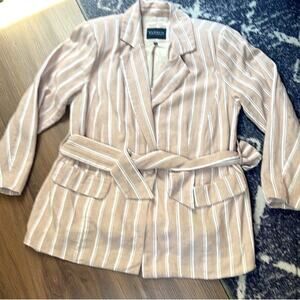 Explore elegance with women's jackets. Featuring a vibrant pink and a stylish tan striped design, these jackets offer both flair and sophistication. Perfect for any occasion.in excellent condition except