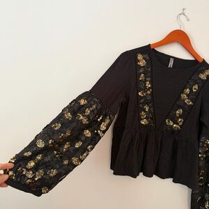 Anthropologie Neale Sequined Peplum Top