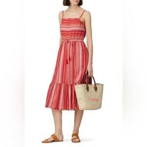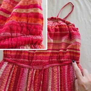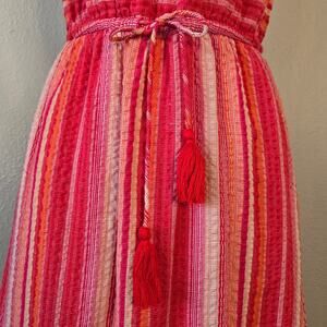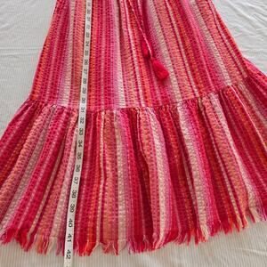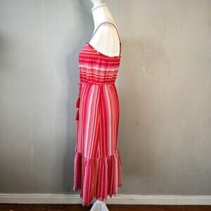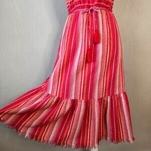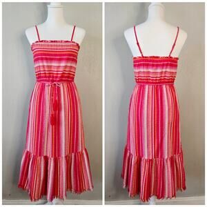 Greylin Striped Tiered Midi Sundress XS Tassel Fringe Crinkle Sleeveless Boho