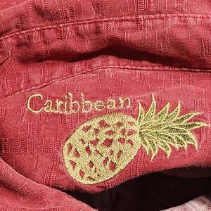 Caribbean Hawaiian Shirt Mens Size XL Floral Beach Short Sleeve Silk Blend Red