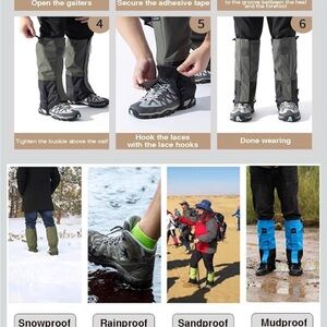 Stay dry and comfortable with these waterproof green and black gaiters. Ideal for mountain walking and hunting, they provide excellent protection.