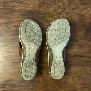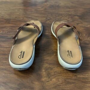 Elegant leather sandals with a sleek design. Barely worn. Adjustable Velcro’s on side. Size 8 smoke free home